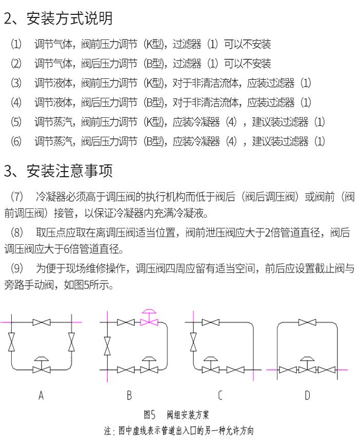 【一】本系列產(chǎn)品執(zhí)行機(jī)構(gòu)有:薄膜式、活塞式兩種;作用形式有:閥前壓力調(diào)節(jié)(泄壓持壓型),閥后壓力調(diào)節(jié)(減壓穩(wěn)壓型);附設(shè)隔溫冷凝罐可在≤350℃溫度下使用。根據(jù)不同的工況條件可選用不同的閥芯結(jié)構(gòu)型式以及不同執(zhí)行機(jī)構(gòu),以達(dá)到最佳的控制效果。