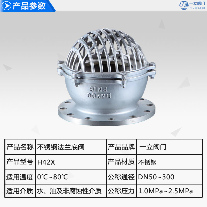 - 產(chǎn)品說(shuō)明 H42X不銹鋼法蘭底閥 是一種節(jié)約能源的閥,一般安裝在水泵水下吸管的底端限制水泵管內(nèi)液體返回水源,起著只進(jìn)不出的功能。閥蓋上有很多個(gè)進(jìn)水口和加強(qiáng)筋起到了不易堵塞