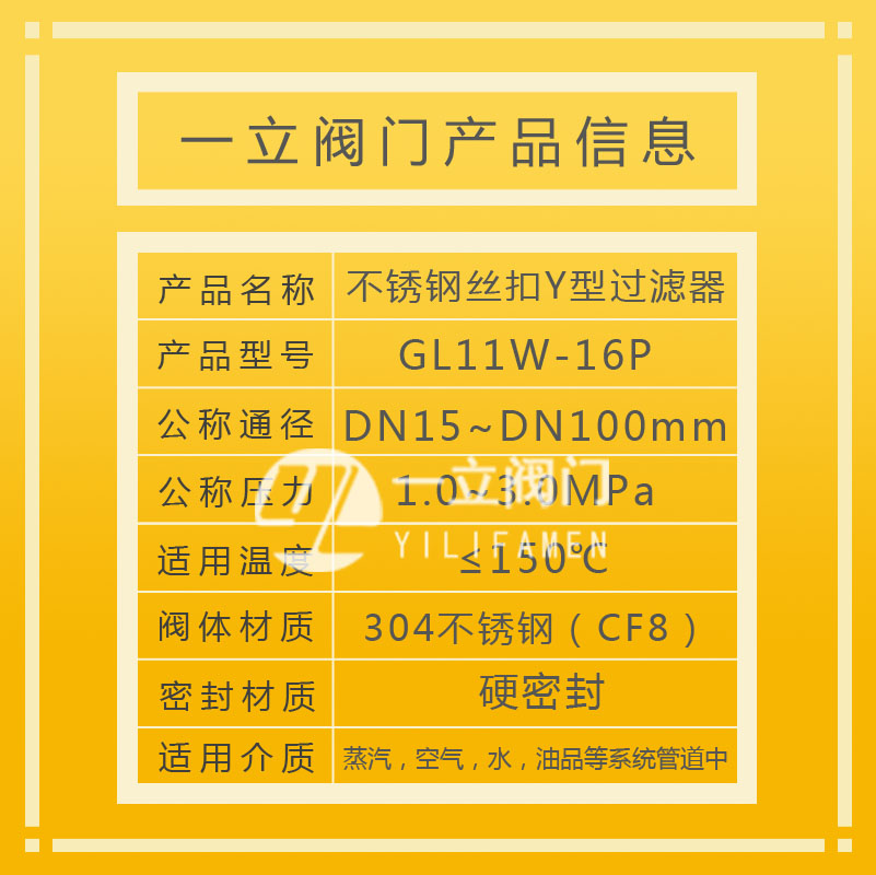 GL11W絲扣過(guò)濾器,用于管道清除輸送介質(zhì),熱水、冷水、蒸汽、壓縮空氣各種機(jī)械雜質(zhì),特別是鍋爐房循環(huán)水源前均需安裝此產(chǎn)品,為了消除系統(tǒng)中的機(jī)械雜質(zhì)使設(shè)備和管道免受堵塞和磨損,工作壓力16-40kg/cm3,在確定流速下壓損為0.05-0.1米水柱。