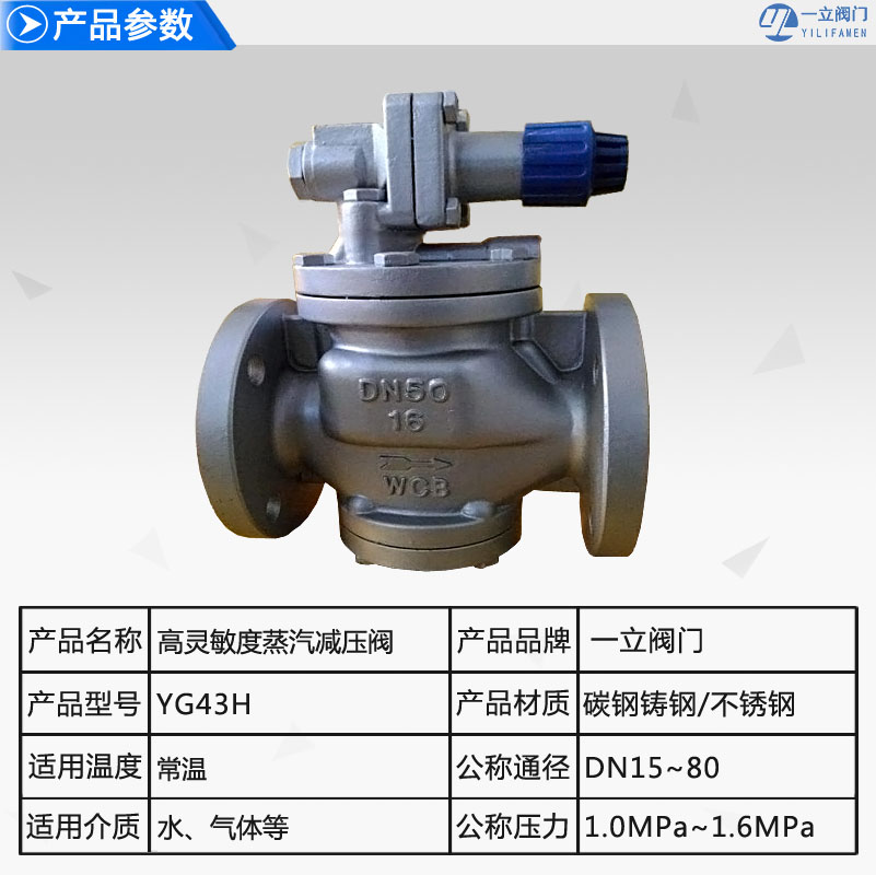 YG43H高靈敏度蒸汽減壓閥主要用于蒸汽管路,適用于進口壓力變化大,流量變化大的蒸汽管路。