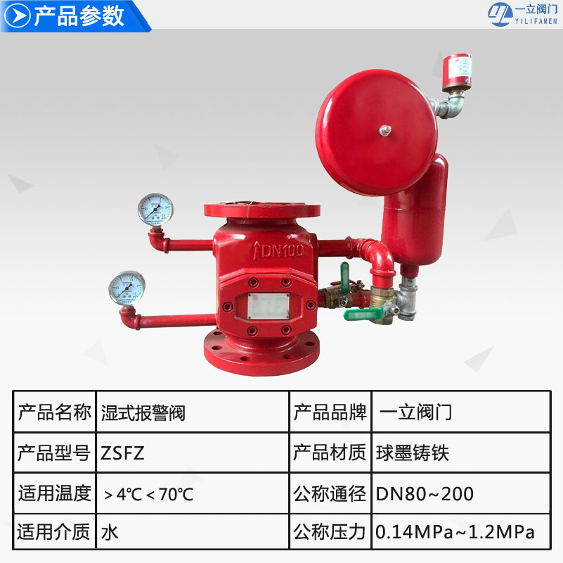 濕式報(bào)警閥與延遲器、水力警鈴、灑水噴頭、消防供水系統(tǒng)等連接組成自動(dòng)噴淋滅火系統(tǒng)。是自動(dòng)噴淋滅火系統(tǒng)中重要報(bào)警控制閥門。