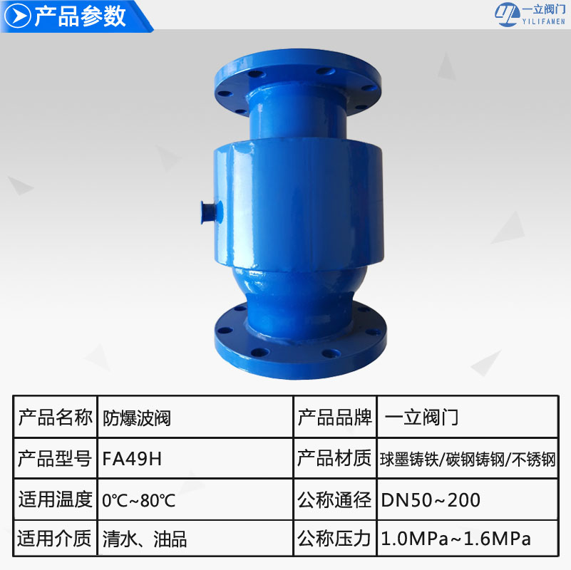 防爆波閥是一種既能消除沖擊波又能阻擋水錘沖擊波的安全閥,它是由多組安全閥構(gòu)成的產(chǎn)物,它起到的功能是單一安全閥無法達(dá)到的。該產(chǎn)品安裝于給水管道的頭部和人防往外輸送介質(zhì)的出口處,以擋波和消波的方式相結(jié)合,防止沖擊波進(jìn)入系統(tǒng)設(shè)施工程的內(nèi)部,從而達(dá)到消除具有破壞性的沖擊波,起到保護(hù)系統(tǒng)設(shè)施正常運(yùn)轉(zhuǎn)和安全防護(hù)的目的。在正常狀態(tài)下閥門處于常開狀況,系統(tǒng)介質(zhì)正常暢通,當(dāng)沖擊波傳入該閥時,主閥活門受到?jīng)_擊,克服了彈簧的強(qiáng)力,迅速關(guān)閉將沖擊波擋在外端,而已進(jìn)入的沖擊波在消波閥的作用下,引入消波室,化解了沖擊波的破壞力,通過阻擋和化解從而達(dá)到了保護(hù)的意義。主要用于人防系統(tǒng)往外輸送介質(zhì)管網(wǎng)的頭部,用以防止系統(tǒng)設(shè)施外端的沖擊波進(jìn)入,保護(hù)設(shè)施和人員的安全。