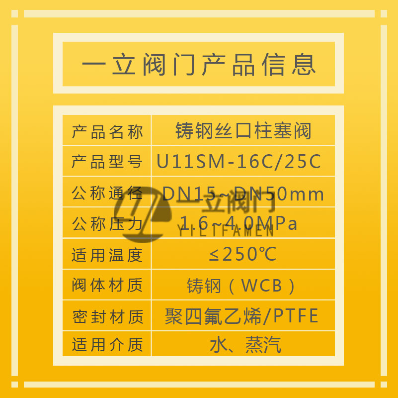 咨詢:U11SM-16C/25C 鑄鋼絲口柱塞閥